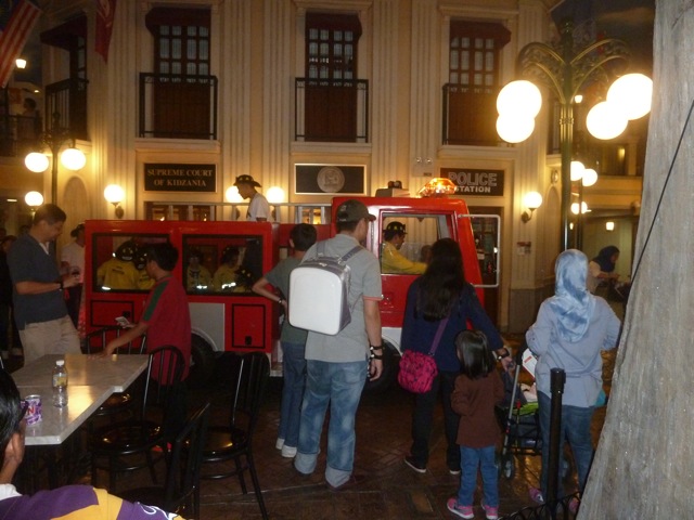 Dans une petite salle on explique les dangers des bougies qui se renversent et autres accidents domestiques quand tout à coup l’alarme se met en marche et tous les petits pompiers en herbe sont invités à monter dans le camion pour aller éteindre un incendie.